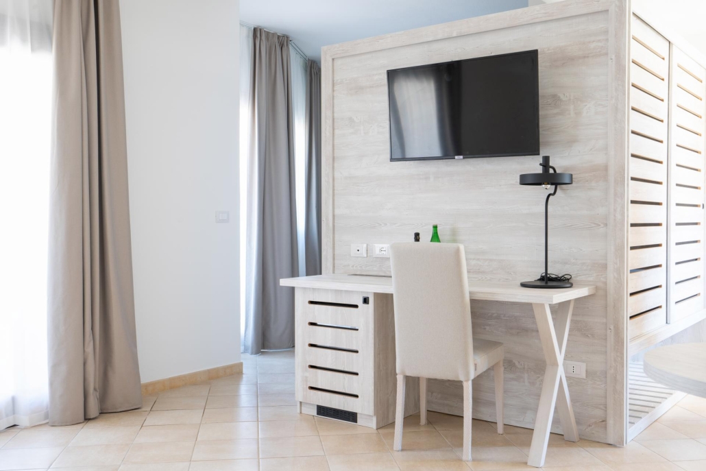Cameră dublă, cu aer condiționat, TV, baie privată, balcon/patio şi vedere spre mare pentru cei care aleg varianta “Sea View”.